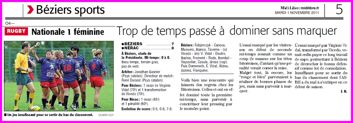 vulcain a écrit:Le manque d'effectif devrait conduire le club à une rétrogradation en Fédérale 3 et de postuler pour le rugby à 12 ou 13...