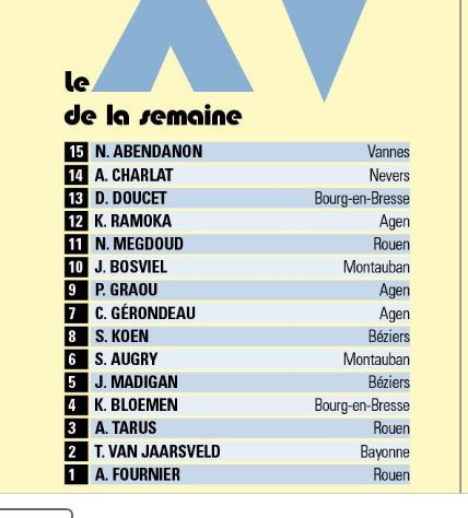 Déplacement a Bourg la semaine prochaine chez des Bressans qui n'ont pas pour habitude de baisser le froc a domicile et qui de plus n'auront pas du tout droit a l'erreur, puis reception de BAYONNE avant le derby !