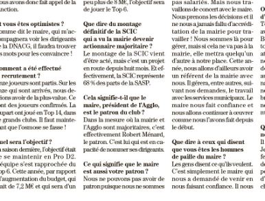La seule chose que je partage c est d avoir un président salarié et professionnel. Mais surtout extérieur à Béziers. Mais je n y crois pas du tout .