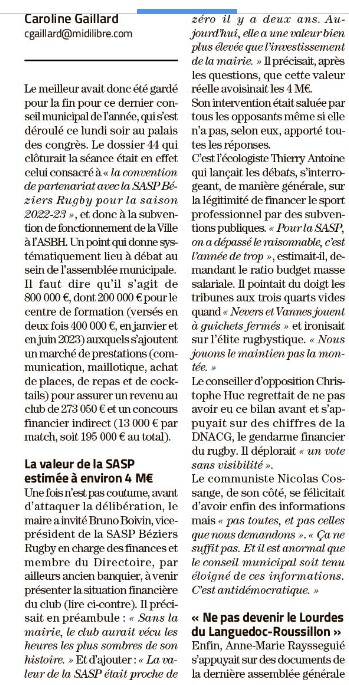 Sinon pour revenir au sujet ce soir 1,2md va être voter au cm. Une question où en est le club financièrement et encore une autre est ce sain qu'un club pros qui sois autant subventionné. A moment donné il faudrait peut être débrancher la perfusion municipale non ? Quand penses la cour des comptes ?